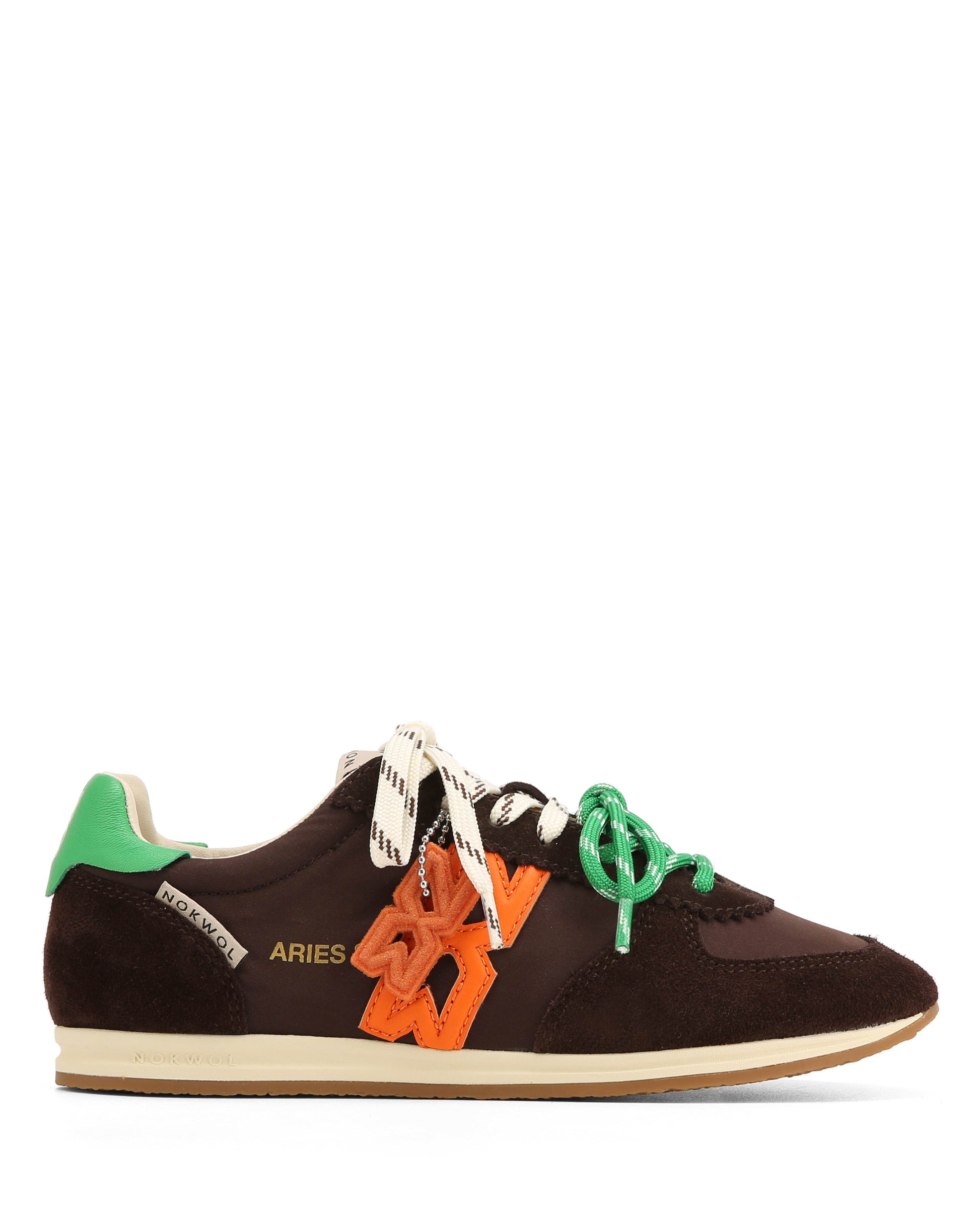 Aries 82 pulls straight from the archives. Built in a mix of soft vintage nylon, suede, and leather, it has that old-school feel with a modern refresh. The double-lace detail and Nokwol hanging charm add a playful nod to styling, while the leather footbed and rubber outsole keep it grounded for everyday wear. Designed to stand out without trying too hard, Aries 82 brings throwback energy in fresh, contrast-heavy colourways.