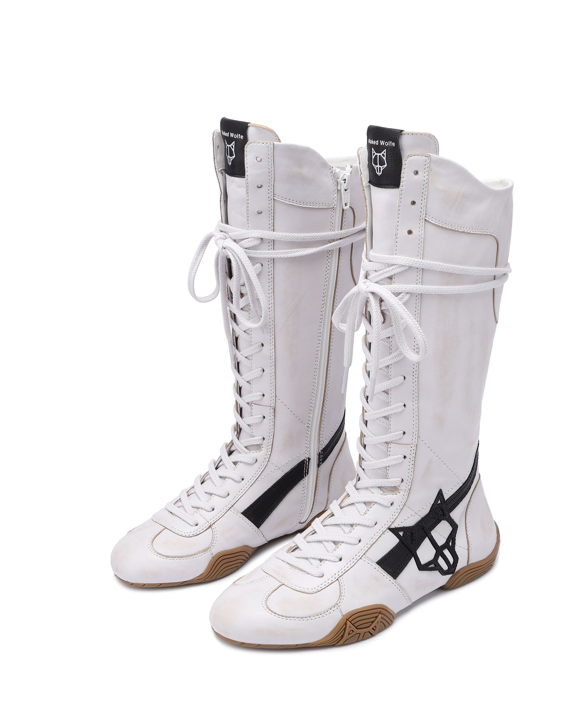 Indulge in luxury with the Betsy under the knee boxing boot. Crafted from sumptuous leather, this premium boot features a rubber outsole, a striking wolfe head patch, and a side logo. The lace-up design ensures a secure fit, while the inside zip allows for effortless slip-on.