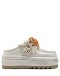 Introducing the Blizzard slip-on from Naked Wolfe, a backless shoe that combines luxury and modern comfort. Crafted from high quality distressed denim, it features a high quality leather lining and a leather sock for exceptional comfort. The shoe boasts a 60mm heel height and a chunky super light tread for an elevated look. Thick multi coloured laces, with an embossed logo and a big Wolfe head key chain enhance its distinctive design. Perfect for making a statement, the Blizzard slip-on is a must-have addition to your footwear collection.