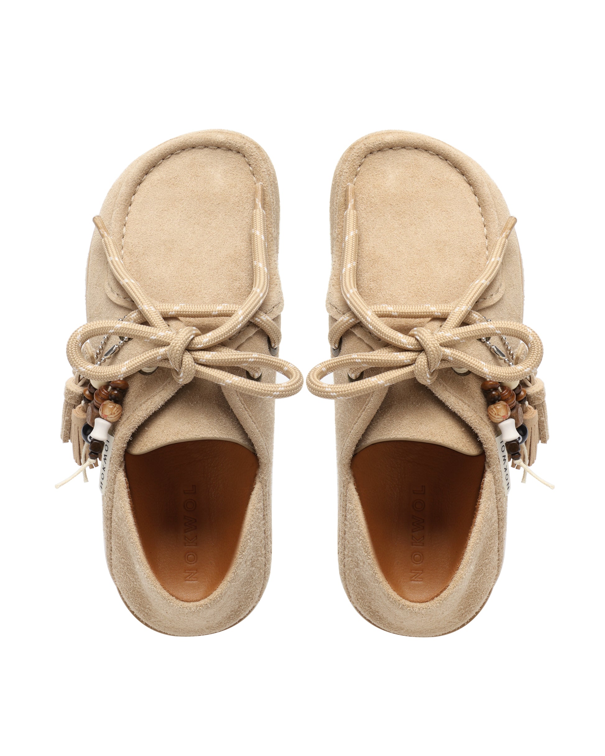 CLOVA is your go-to for cool-weather ease with a refined, rustic edge. Crafted from premium textured suede, this moccasin-inspired silhouette features bold stitching, decorative tassels, and a classic lace-up front for a heritage feel with a modern twist. A soft leather lining at the collar enhances comfort, while the lightweight rubber outsole delivers traction and flexibility for everyday wear. Finished with signature Nokwol branding and tactile detailing, CLOVA brings elevated character to relaxed layering-perfect for laid-back days.
