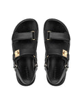 Elevating your style with sophistication, these sandals feature elegant gold-tone hardware for a touch of glamour. Available in three stunning colourways—timeless black, chic bone, and glamorous gold—they effortlessly complement any outfit, making them a versatile wardrobe staple for the season. Whether you're exploring the city streets or lounging by the beach, step out in style and comfort with these must-have MONAS.