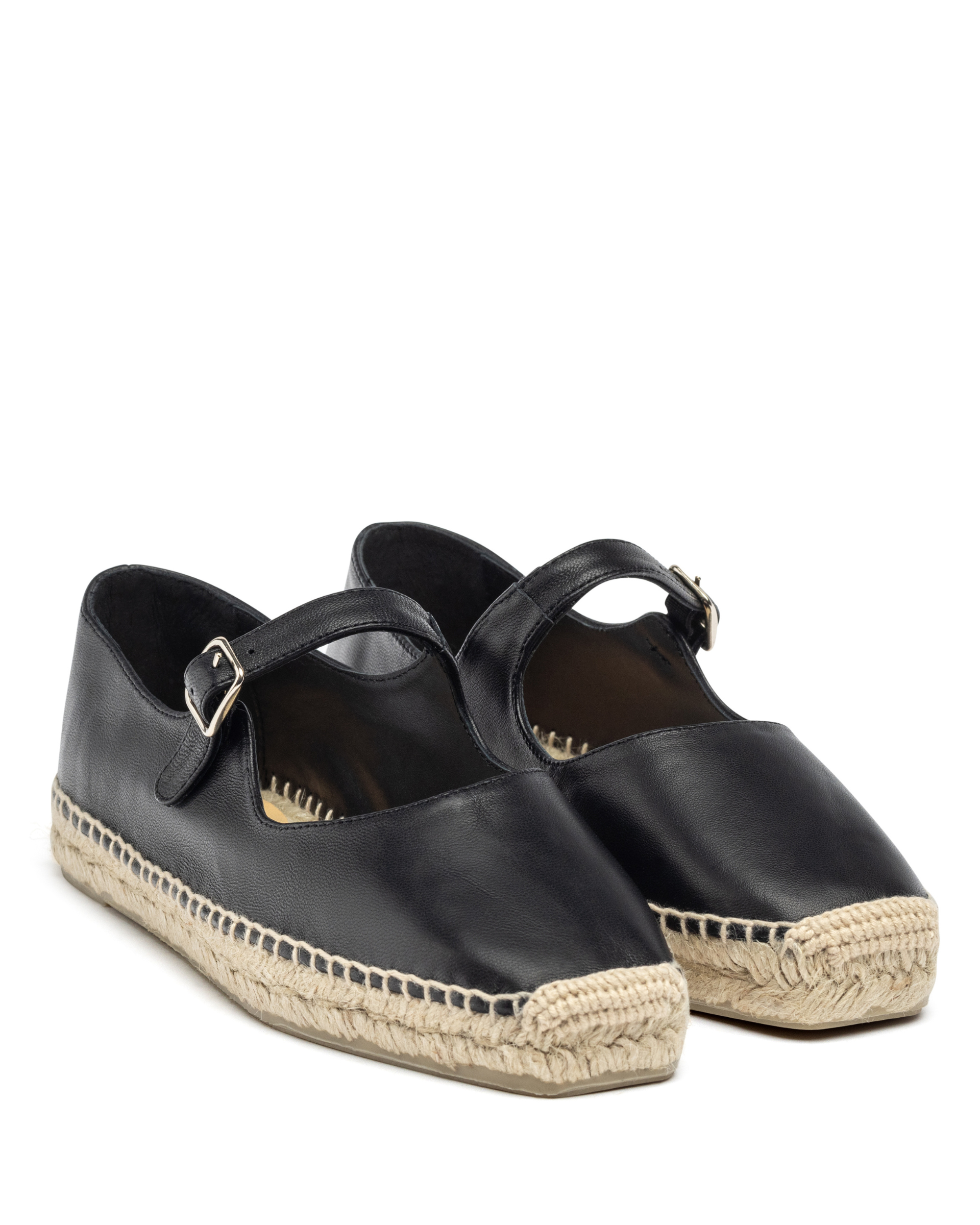 Pepa mary-jane style flat espadrilles in nappa leather with buckle closure and jute sole.