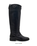 The Remi Santa Monica Nero boot features luxurious Italian leather complemented by a stylish top buckle, blending classic craftsmanship with modern sophistication. Designed for those who appreciate refined details, this boot offers a polished look and lasting comfort for any elegant ensemble.