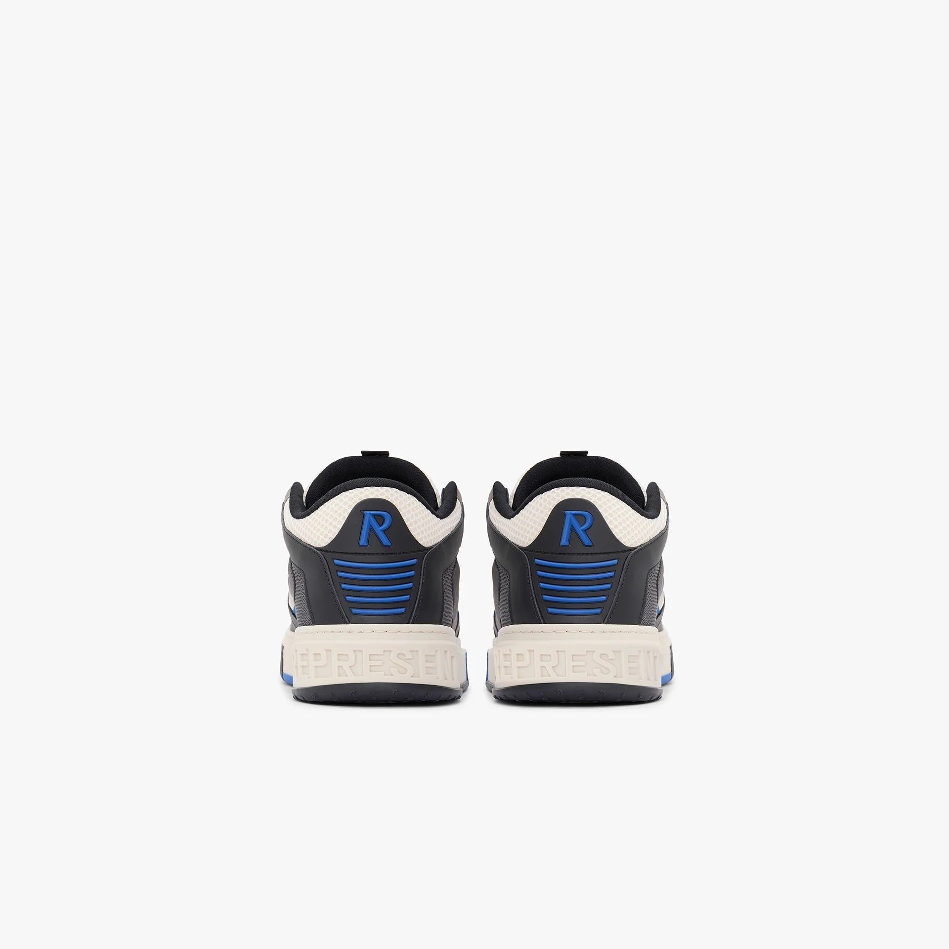 Introducing the Reptor 2 in Black & Vintage White. Crafted from a premium Italian leather and nubuck mixed upper with an open mesh tongue and collar, with ballistic nylon side panels and a perforated toe box. The shoe has an Initial branded tongue with perforated details, a moulded Represent logo to the heel and Initial branding to a side wrapped panel in blue. It has a leather insock, with an open cell foam construction to assure premium comfort and cushion with every wear. It comes with two lacing options; namely vintage white and black. It is finished with zig zag stitch details and stitching to the quarter panel, with embossed repeat Initials to the heel and toe tread.
