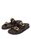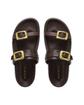The ZAZ slip-on sandal is the perfect blend of laid-back style and bold flair, crafted for those who want to make a statement with ease. The full leather upper offers a rich, textured look, while the leather lining and leather-wrapped footbed ensure comfort and support all day long. Bold, brushed gold chunky buckles stand out as a key design feature, with the signature Nokwol stainless steel pin adding a touch of refinement. A lightweight TPU outsole makes these sandals durable yet flexible, ideal for summer adventures. Available in black, brown, and tan, the ZAZ sandal is a versatile must-have that pairs effortlessly with any warm-weather outfit, giving you instant style with minimal effort.